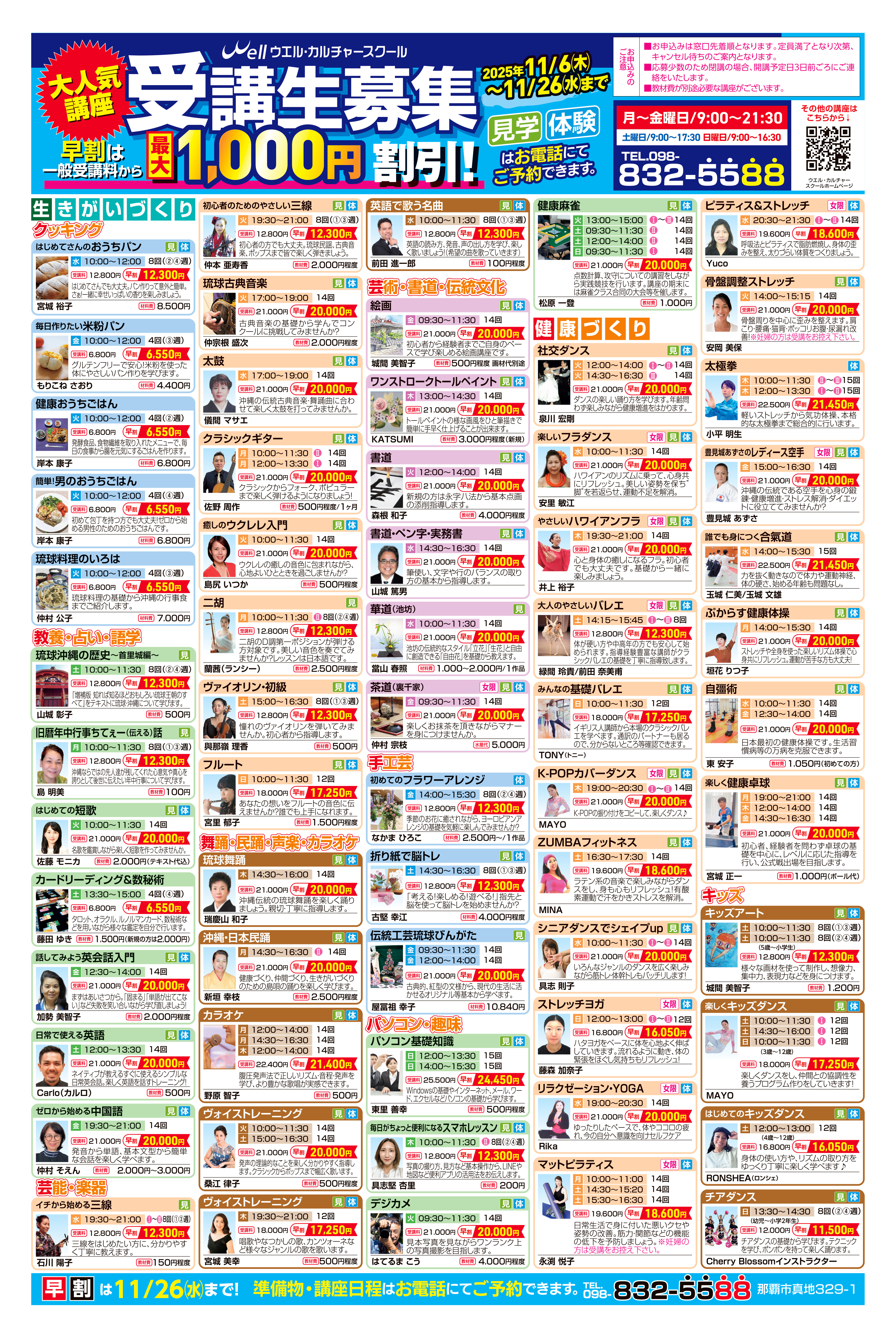 ウエル・カルチャースクールでは、2025年第3期(12月~3月)に向けて受講生募集中。